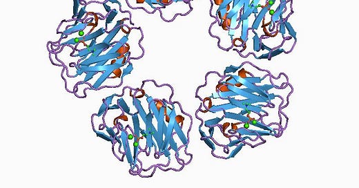 When the molecular milieu of the body is viewed through this lens, mere regularity often serves to mark the “pattern” of elements that deserve the immune system’s attention. Hence one of the most evolutionarily-conserved, and the first-discovered class of Pattern Recognition Receptor, the Pentraxin: